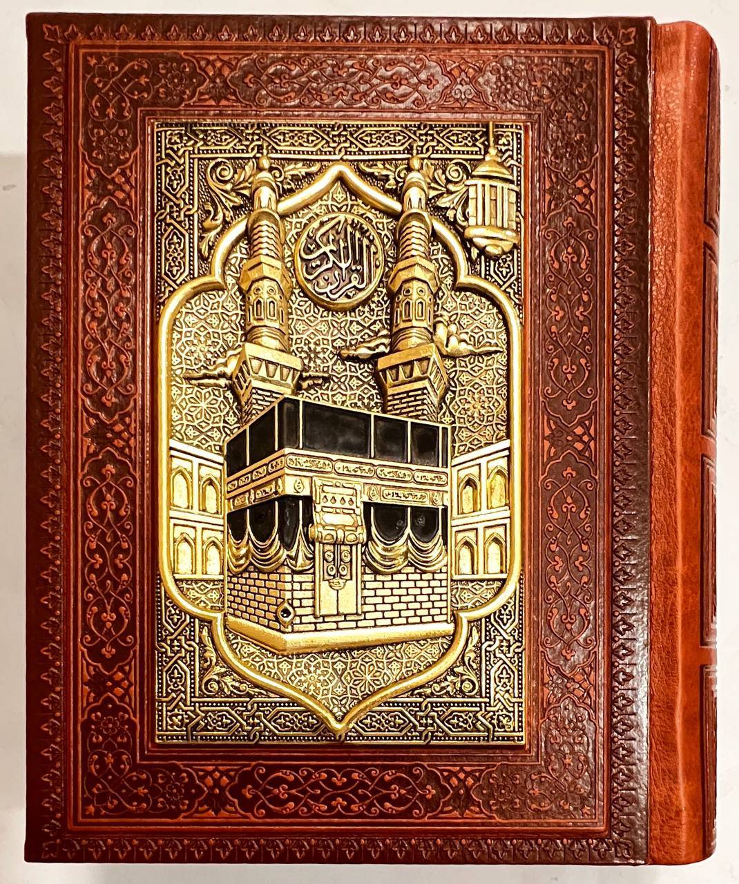 قرآن کریم گلاسه قاب کشویی  /رحلی چرم و مس