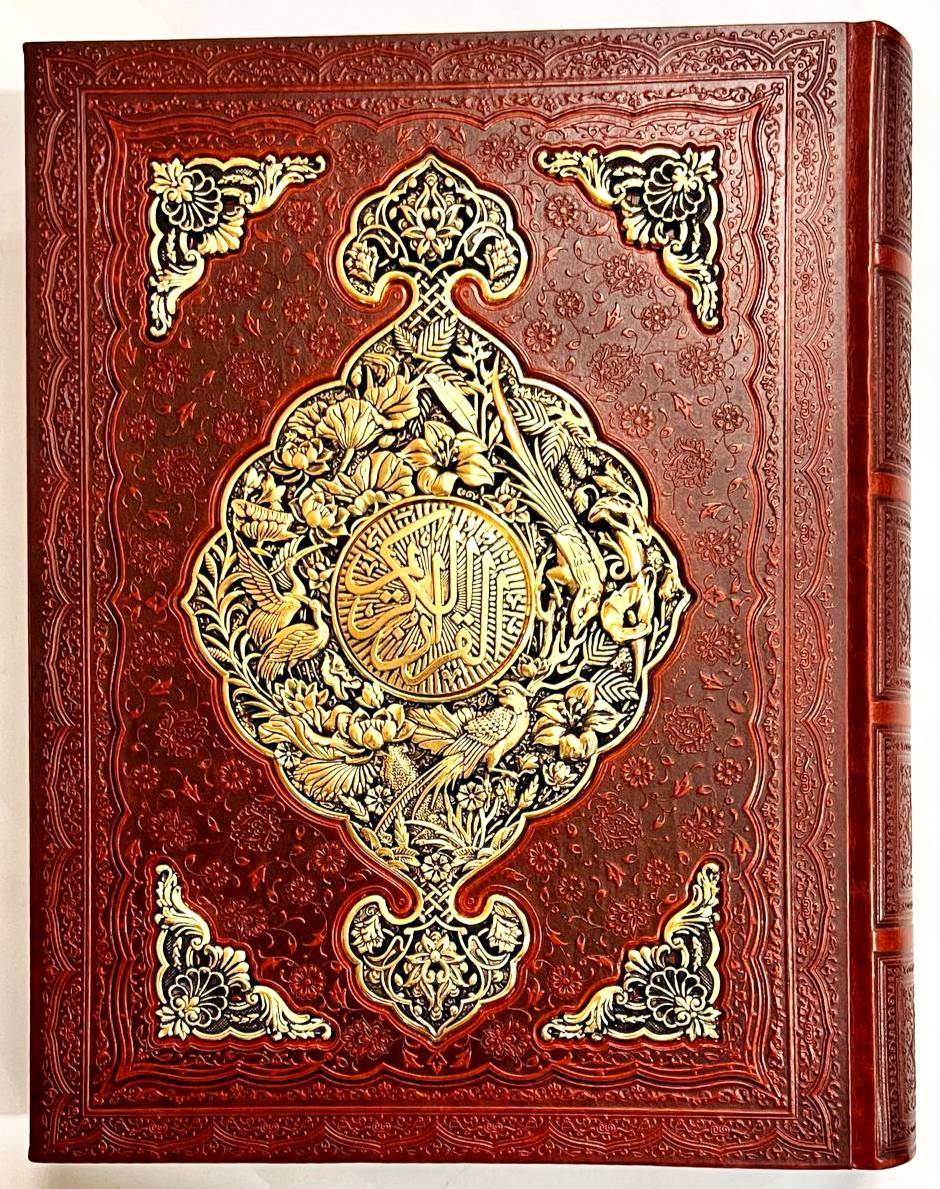 قرآن کریم گلاسه قاب کشویی  /رحلی چرم و مس